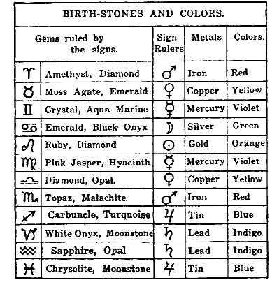 In the windows of jeweler's shops and in cheap, ready made horoscopes one may often read that it is "lucky" for people born in a certain month to wear a particular stone or color. It means business to the jeweler and the astrological prestidigitator who produced "your horoscope" by a turn of the wrist from a box when you tell him in what month you were born. Both buy their instructive (?) literature at a nominal price per thousand, the principal cost being paper and printers' ink; there are no furrows in their foreheads from deep and earnest study of the problem.