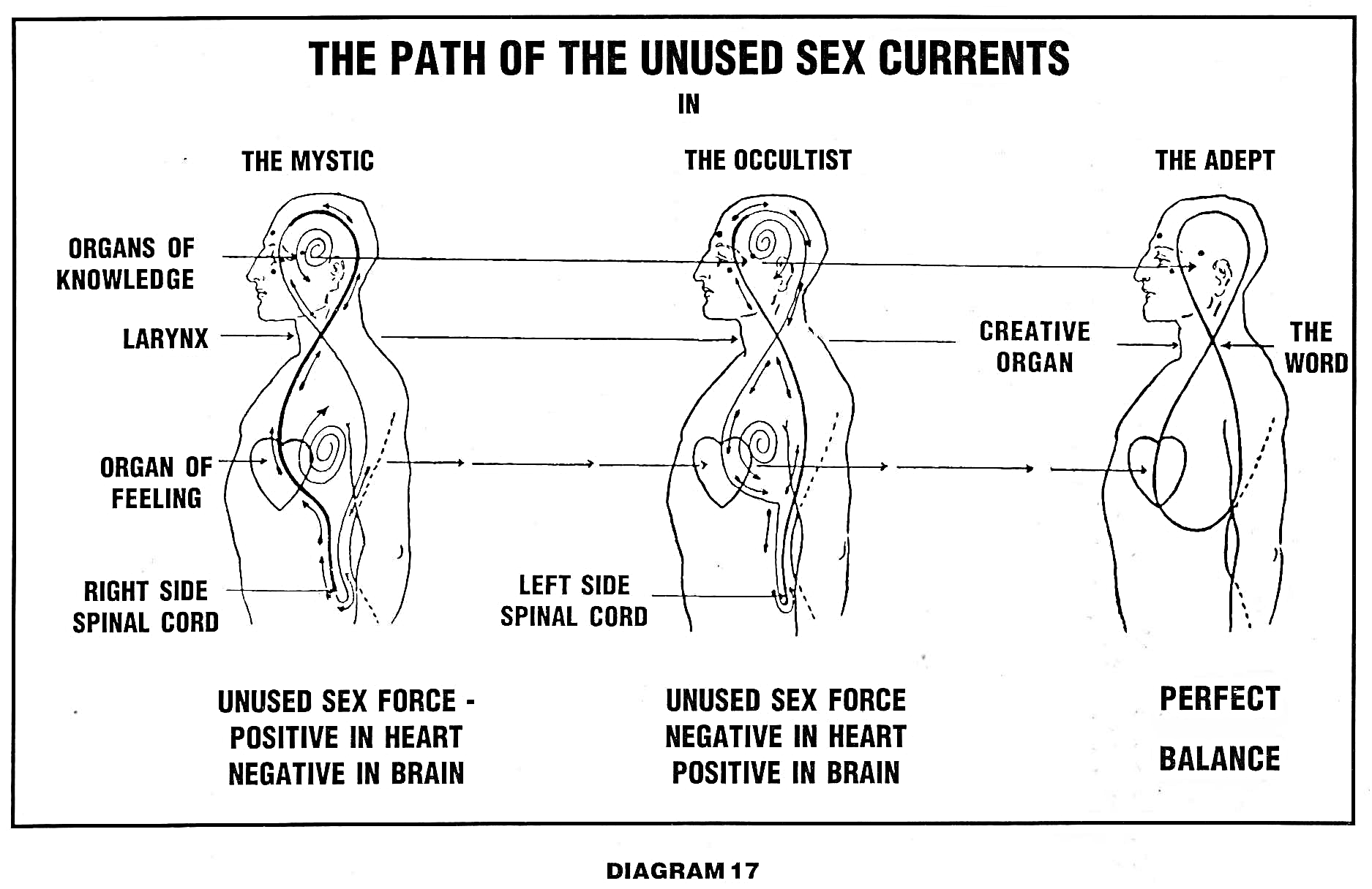 Answer: The division of the sexes was brought about at a very early stage of man's evolution, when he had as yet no brain or larynx. One-half of the creative force was then turned upward in order that these two organs might be built. The brain was made for the evolution of thought whereby man creates in the Physical World. Houses, cities, steamships, railways, everything made by the hand is crystallized human thought. The larynx was also made by the creative sex-force in order that man might express his thoughts. The connection between those organs will be evident when we remember that the boy who possesses the positive creative force changes his voice at the time of puberty, when he is first able to procreate his kind; also that the man who abuses his sex-force becomes an idiot, while the profound thinker who uses nearly all his creative force in thought will have little or no inclination for amorous practices.