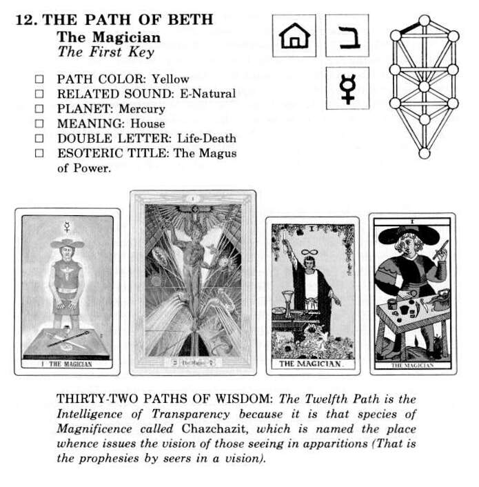 Biblically he is representative of Adam in Paradise before Eve (the rib) had been taken out of his side. He is masculine as he looks upon the world spreading out before him, for the feminine is hidden within. As a result of the division into sexes, mankind descends from the Mount of Paradise and enters the lower realms of matter, space and time where the Opposites hold sway, and Paradise is but a remembered dream of bliss. The Magus has found the secret Path leading back to that Mount of Glory.