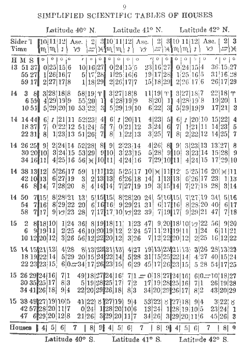 9. Simplified Scientific Tables of Houses: