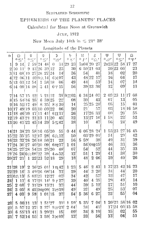 22. Simplified Scientific Ephemeris of the Planets' Places: