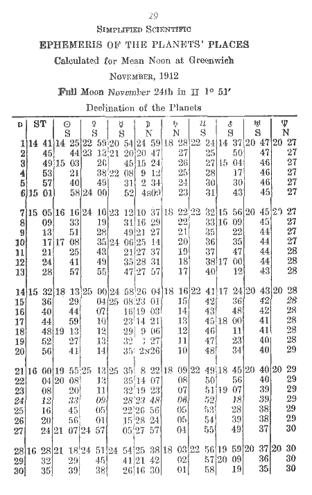 November, 1912 - Longitude of the Planets - Page 28
