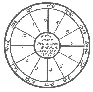 The horoscope has now been cast and is complete. Most astrologers now start to read, but to do this work thoroughly it is necessary to make an index such as will be found in a later chapter. In order to make the student thoroughly conversant with the manner of casting a horoscope we will first complete the figure cast in part for Aug. 2, 8:15 P.M., for that horoscope offers certain peculiarities worthy of illustration.