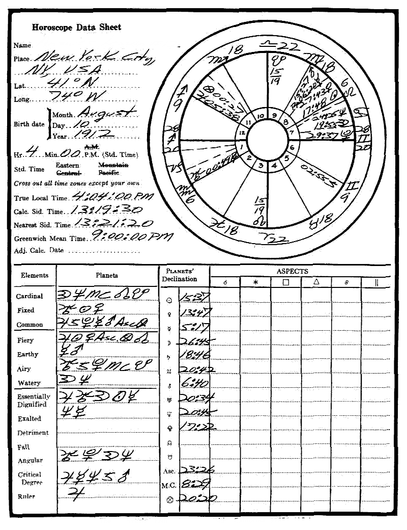 In the last Astrology Independent Study Module we requested you to finish setting up the horoscope on which we had been working previously. Now please state:
