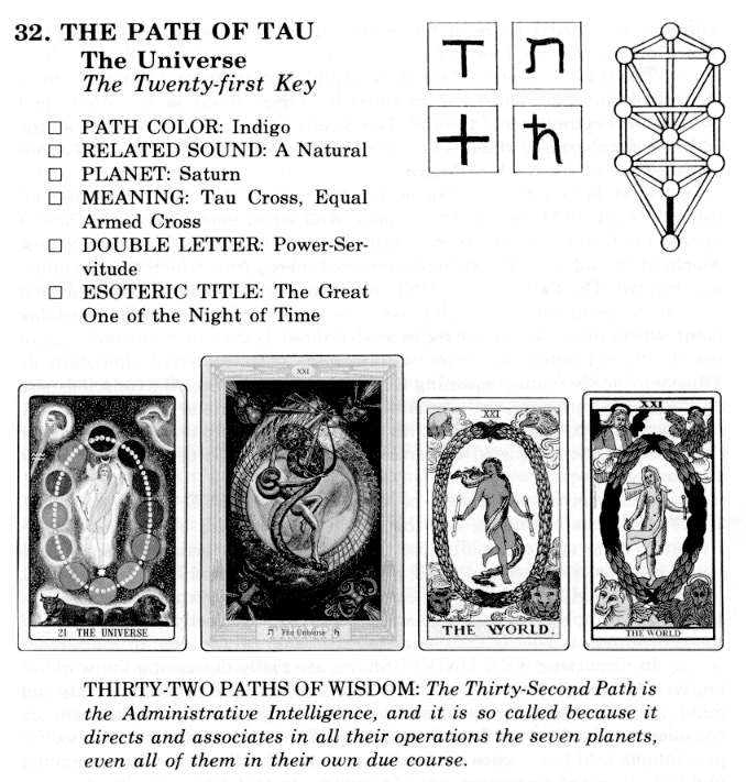 It now becomes clear why the two female figures are always pictured together at the foot of the Cross in the Rite of the Crucifixion. The path trod by Christ Jesus was not laid out for himself alone. Each and every disciple must tread the same path, to the same goal. Tau, as the twenty-second letter, is 2 plus 2 or 4, and again the 400 which is the same principle raised to a cosmic level and potency.