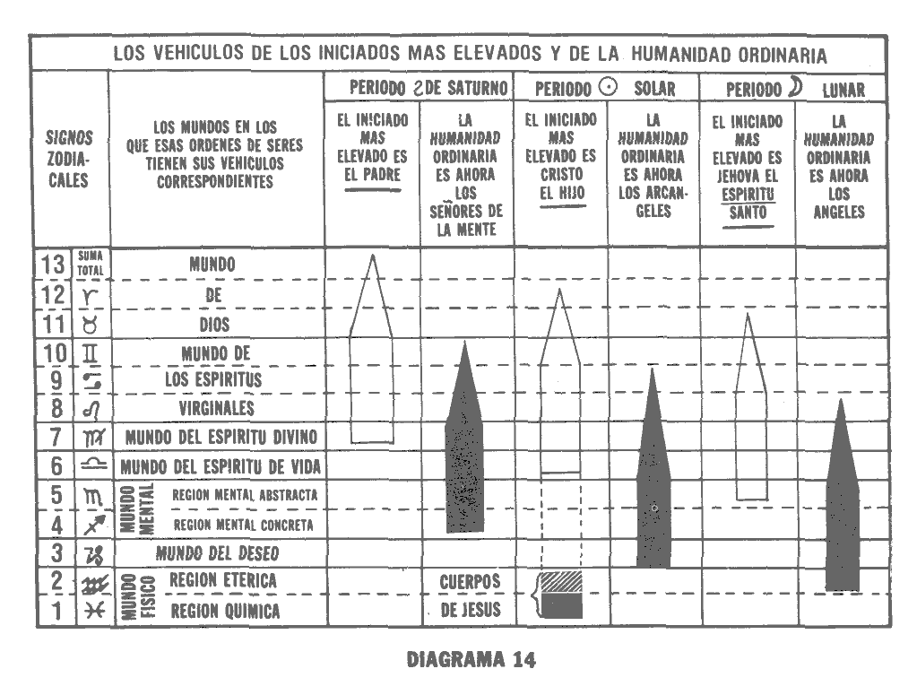 Diagram #14: Father, Son, and Holy Spirit; their vehicles and status in the Universe »
