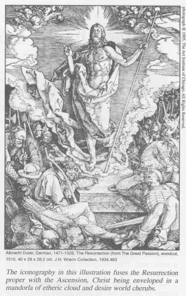 In some respects, however, this present phase, time, and moment of Earth's development is most significant, for we participate in the joyful advent of Life and Light after maximum darkness. We remember that Christ was born to human consciousness in Jesus' body at the nadir of man's material development. Man required a spiritual boost of cosmic proportions to overcome the inertia and myopia that eons of selfish and material preoccupations had engendered in him. The spiritual impetus given by Christ's sacrifice is confirmed at Easter. The dense body is thrown off like an outworn garment. Gravity and the grave are rendered powerless. The burial linens remain as mute testimony to the truth: man is Spirit. He is differentiated in God. He comes out and away from God. He returns to God. Ultimately, he becomes as God.