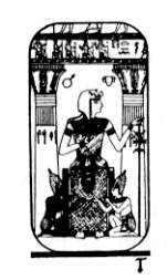 Here the Priest of Isis is sitting between two columns decorated with palm branches indicative of triumph. Every aspirant must at some time be worthy to stand between the two columns of the Sanctuary, for they typify equilibrium between the masculine and feminine principles in both man and nature. In one hand the Priest holds a staff with three bars which indicates mastery of the physical, the mental and the spiritual. At his feet kneel two figures, one white, the other black, representing the mastery of the good and evil forces within himself and in the world around him. This entire Arcanum is symbolic of triumphant mastery. The most important work of every aspirant is to learn self-control. He can never hope to control the forces of nature about him until he has learned to control the forces of nature within himself. This is one of the prolonged and arduous labors which make the Path so difficult.