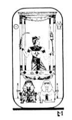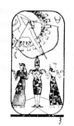 Here we see a warrior seated upon a cubic chariot; in one hand he holds a sword indicating victory, in the other hand is a staff surmounted by a square (control of matter), a circle (union with the eternal Truth), and a triangle (harmonious workings with the Divine).