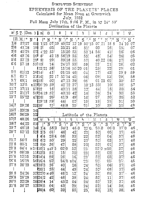 July, 1932 - Longitude of the Planets