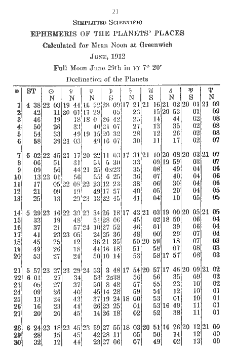 21. Simplified Scientific Ephemeris of the Planets' Places: