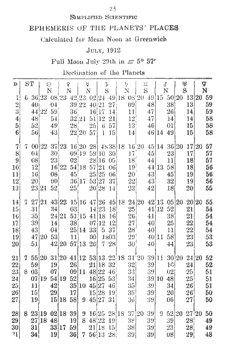 23. Simplified Scientific Ephemeris of the Planets' Places: