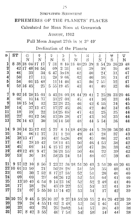 25. Simplified Scientific Ephemeris of the Planets' Places: