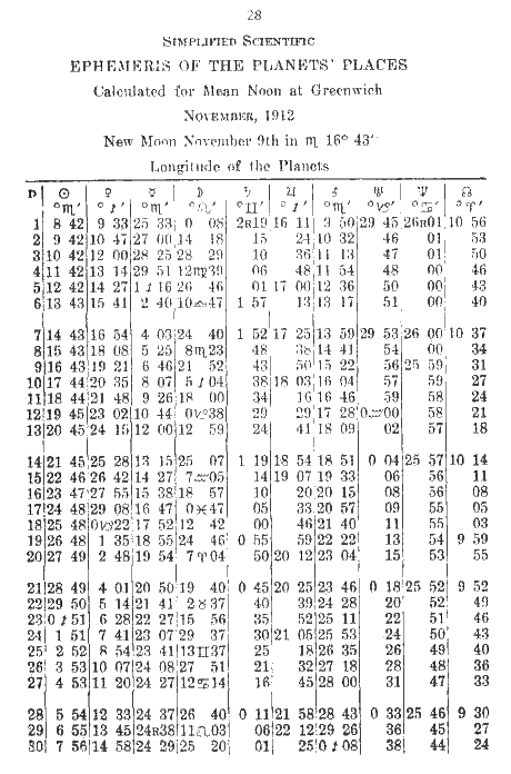 November, 1912 - Longitude of the Planets - Page 28