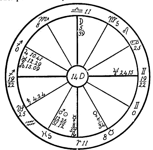 A pair of most interestingly similar charts, both in aspects and symptoms, will now be considered. We will first take figure No. 14C, that of a boy born November 25, 1899, 0:30 A.M.