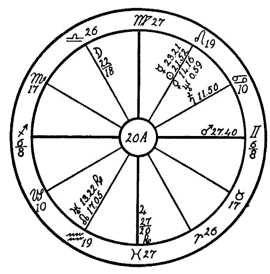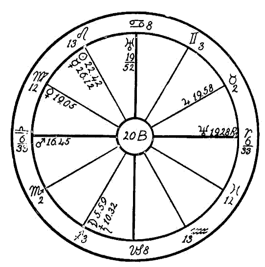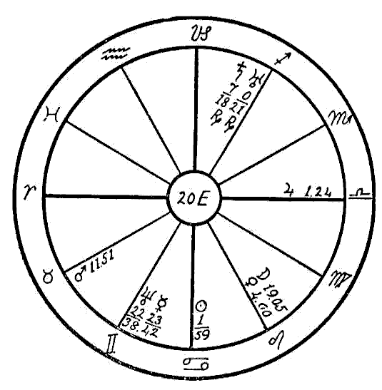 In horoscope 20E, that of a woman born June 23, 1898, we find a very —