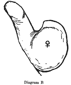 The thumb is a wonderful indicator of character, and must be taken into consideration when diagnosing from the hand. In Diagram B we see that the mount of Venus and the thumb are both a little too heavy. This is a typical Taurian thumb with the mount of Venus very large, indicating a very strong desire nature. The thumb is short and thick, showing a lack of will power to rule the desires. When the thumb is long and well shaped, it is an indication of high ideals and the will to carry them out.
