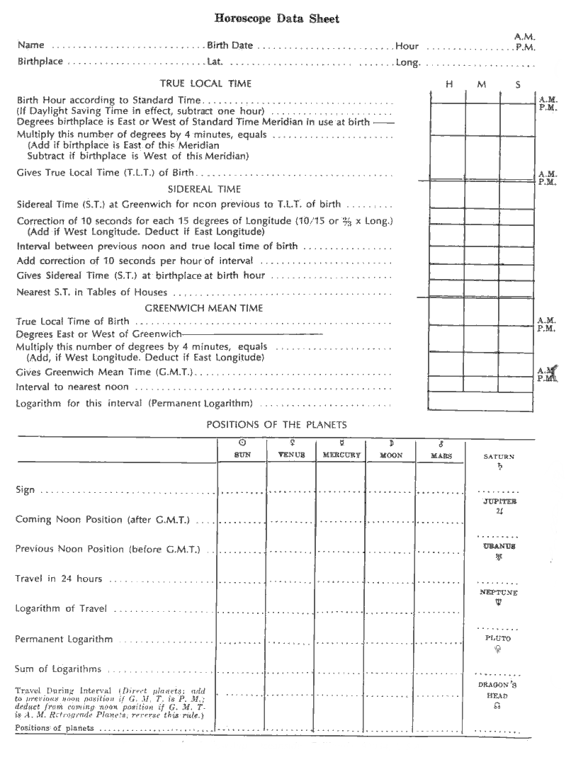 In the next self-study module we shall commence reading a horoscope. That is a study of absorbing interest, but remember, do not love it for the knowledge or the power it will give you; love it for the good you can do with it, and your treasure will be great in heaven. May God bless your efforts.
