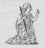 At the entrance stood a sturdy woman. She was dressed in a thin white robe with a blue belt; a large flat collar of blue stones completely covered her shoulders. A band of copper held her dark brown hair in place, and this had a horned ornament in front.
