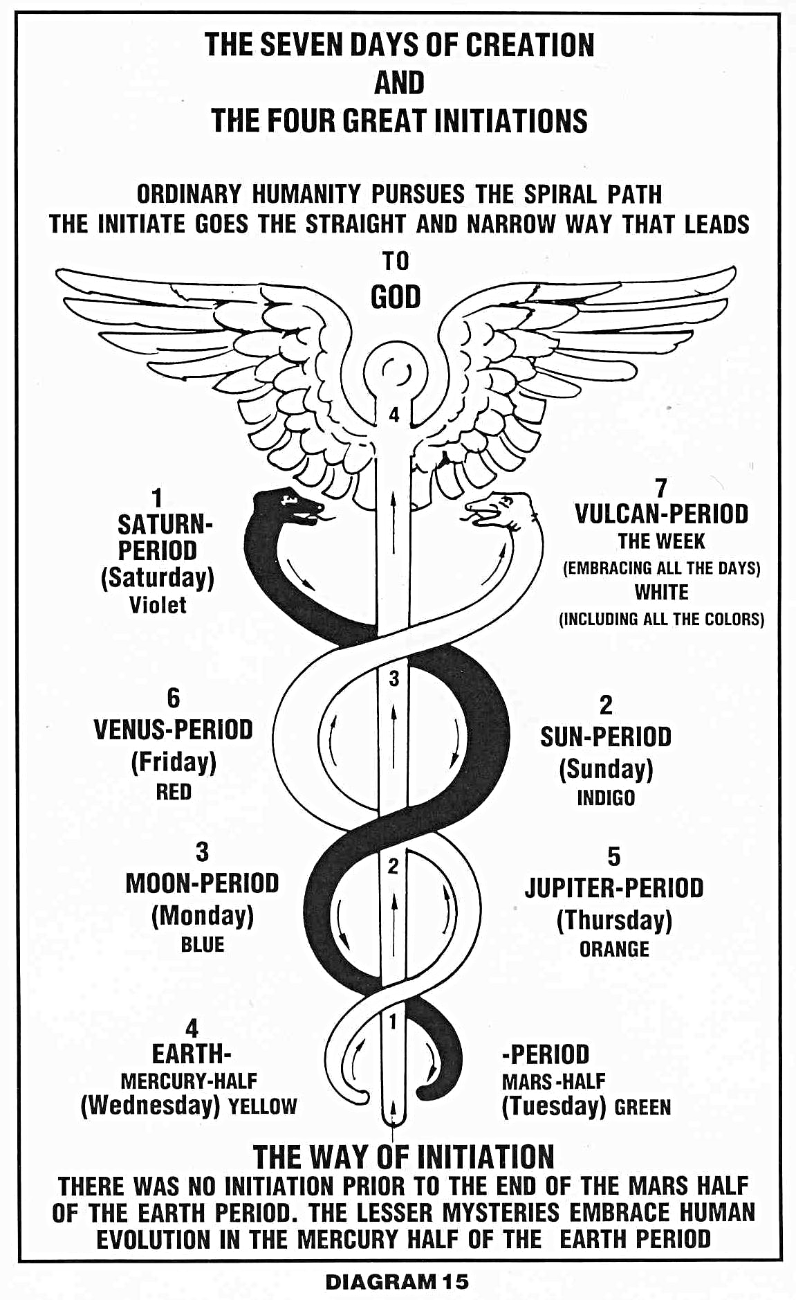 Other new and important discoveries have also been made; for instance, we know now that the Silver Cord is grown anew in each life, that one part sprouts from the seed atom of the desire body in the great vortex of the liver, that the other part grows out of the seed atom of the dense body in the heart, that both parts meet in the seed atom of the vital body in the solar plexus, and that this union of the higher and lower vehicles causes the quickening. Further development of the cord between the heart and solar plexus during the first seven years has an important bearing on the mystery of childlife, likewise its fuller growth from the liver to the solar plexus, which takes place during the second septenary period, is a contributory cause of adolescence. Completion of the Silver Cord marks the end of childlife, and from that time the solar energy which enters through the spleen and is tinted by refraction through the prismatic seed atom of the vital body located in the solar plexus, commences to give a distinctive and individual coloring to the aura which we observe in adults.