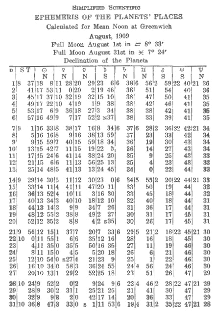 Table of Planetary Powers