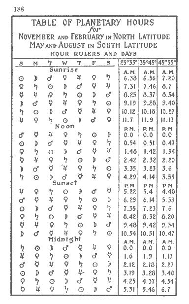 Table of Planetary Hours—2/6